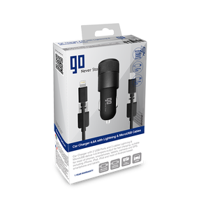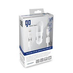 CAR CHARGER 4.8A WITH LIGHTNING & MICROUSB CABLES