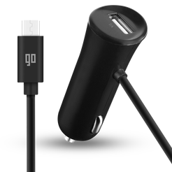 | Car charger with MicroUSB connector and extra USB that can deliver 3.1A output for fast charging suitable for most of Samsung, Blackberry, LG, HTC, Huawei models and others using attached cable | ![]() |